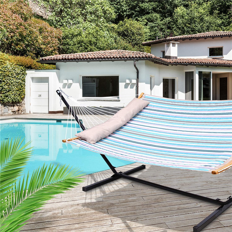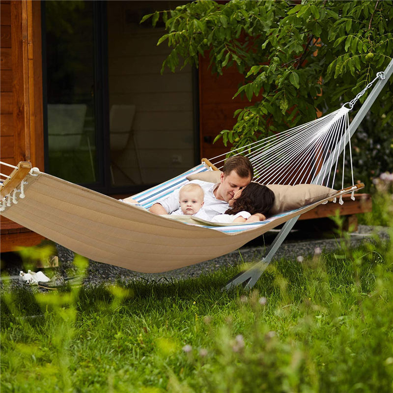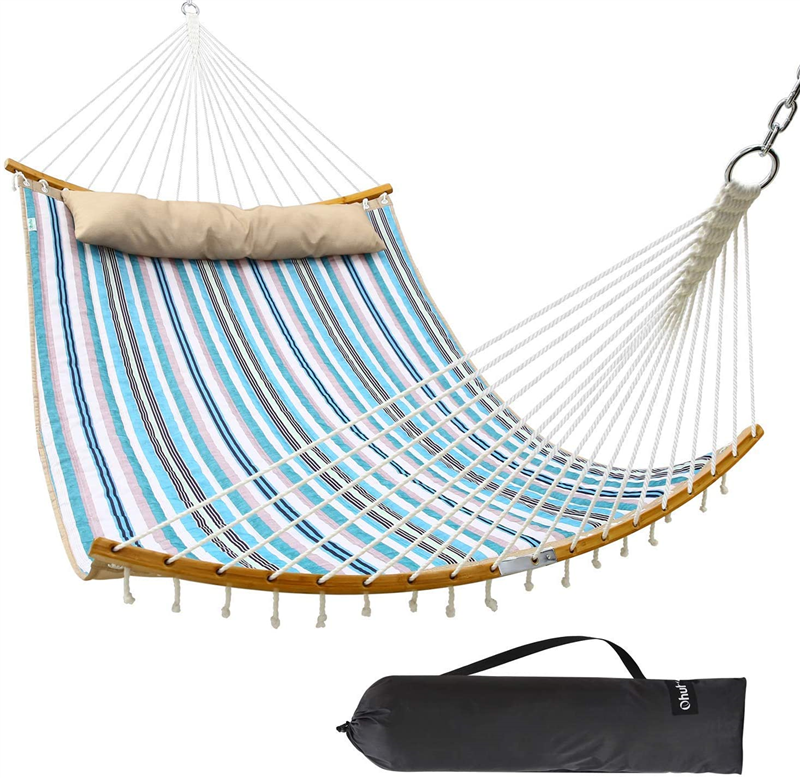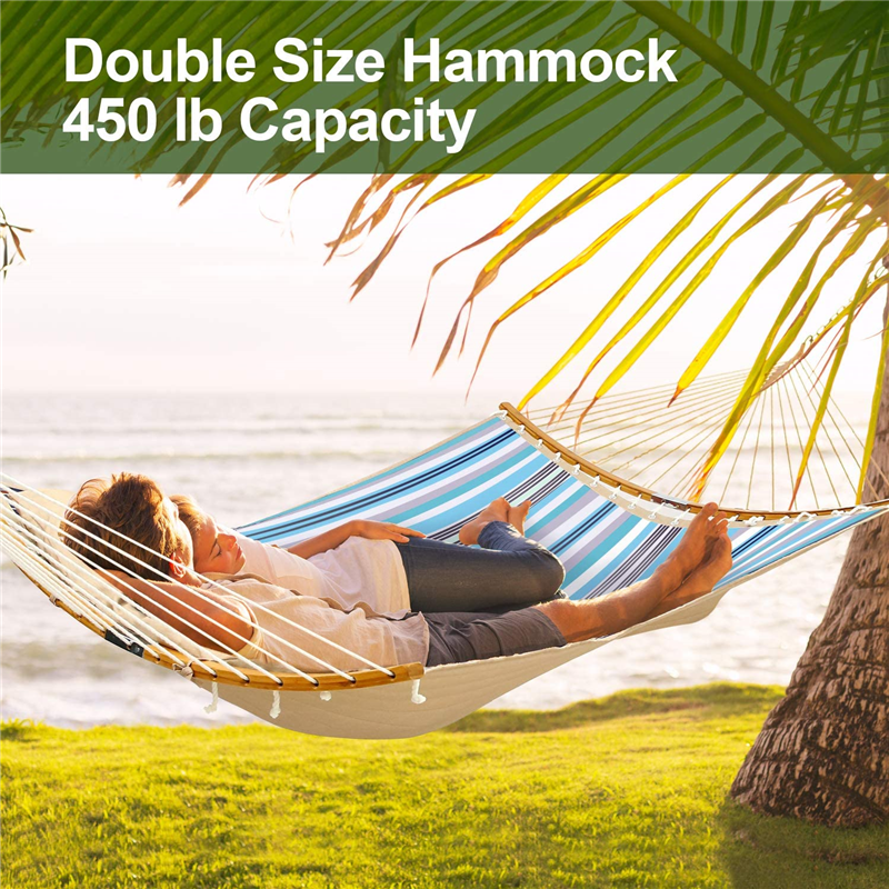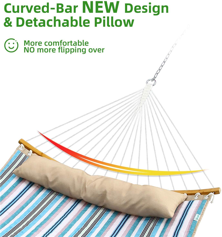 Unique curved bamboo bars of this hammock swing is designed to make your body fit more comfortably into the hammock while lying down without fearing to flop down comparing to traditional straight bar design.