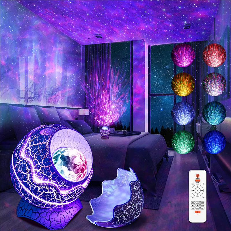The star projector night light can project colorful and abundant number of stars. The Nebula pattern has 4 colors (R, B, G, W), which can be displayed as either a single color or mix with up to 3 different colors at the same time. Comes with a remote control that can adjust speed, brightness, and colors; it can produce up to 14 different color themes that can create a romantic atmosphere and turn the ceiling into a home planetarium for your space fantasy.
