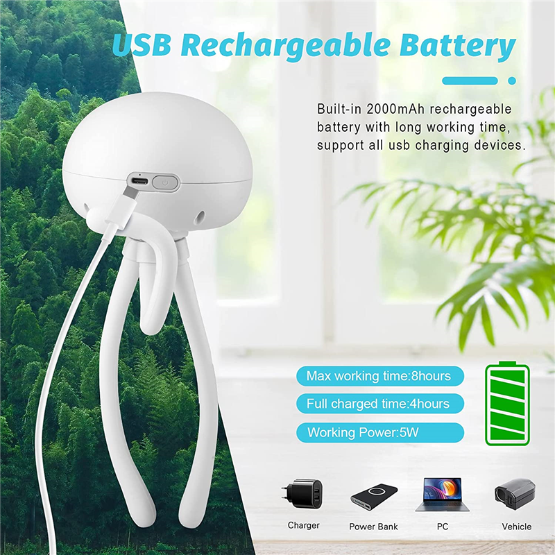 The deformed small jellyfish fan can bring you a cool feeling anytime, anywhere. It can stand on the desktop, can be carried in the hand anytime and anywhere, and can be wound and hung on the stand. There are three types of high, medium and low wind speeds that can be adjusted. The first gear is for sleeping wind, the second gear is for natural wind, and the third gear is for strong wind.