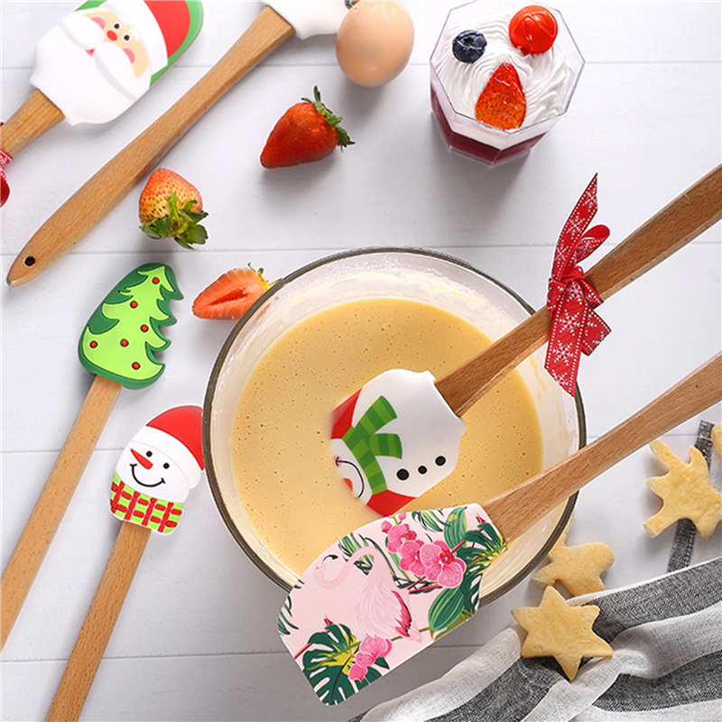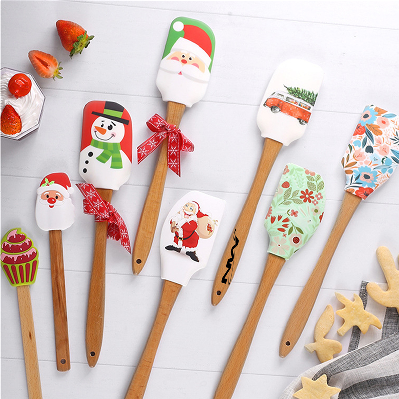 The material of this cream spatula is silicone + wood. We have many styles for you to choose from. Please choose the style you like and contact us for a specific quote. The company's logo and pattern can be printed very well.