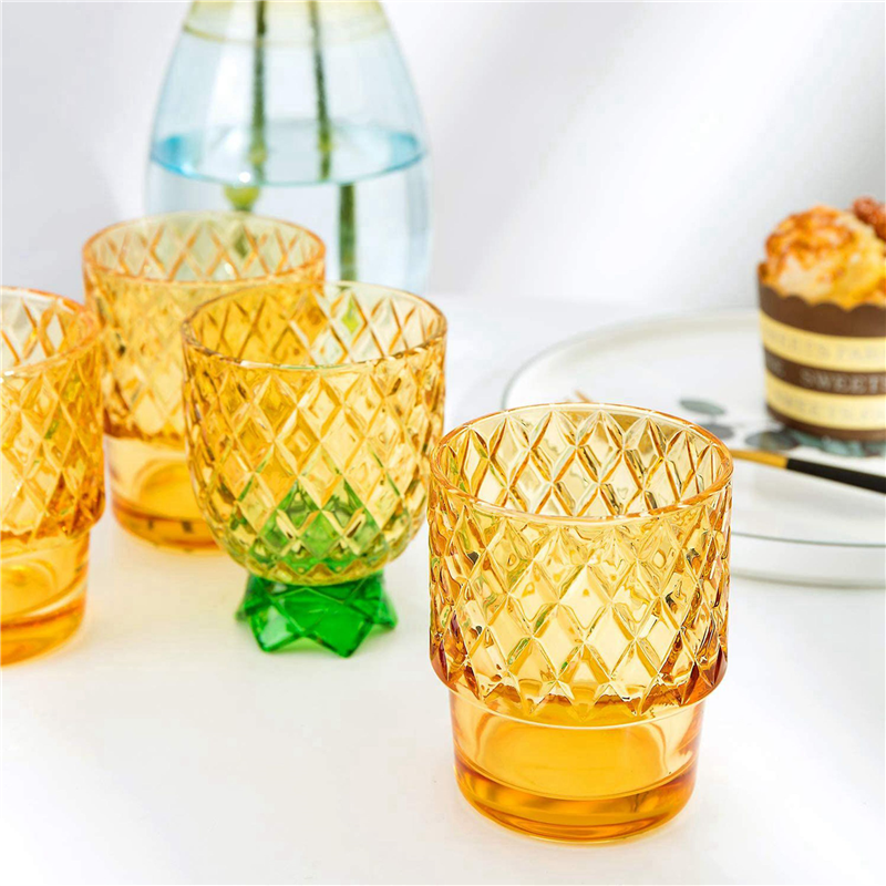 10 oz Cups Pear Pineapple Colorful Stackable Drinking Glass Sets