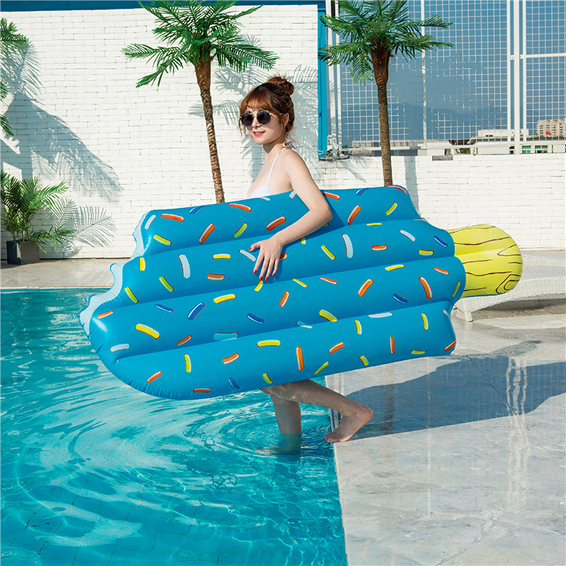 The material of this floating row is PVC. The foldable inflatable floating chair can be used while swimming. Perfect sealing performance. Easy to inflate or deflate. This style folds down to a small size for easy storage. You can also customize your logo.