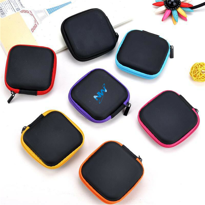 The material of this earphone storage box is EVA. Can accommodate data cables, chargers, headphones, etc. We have a variety of colors for you to choose from. Perfect for printing your company's logo and pattern.