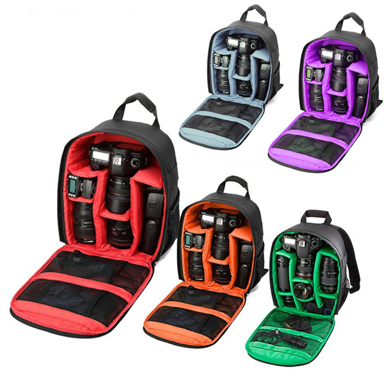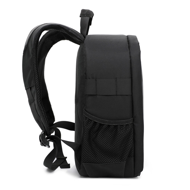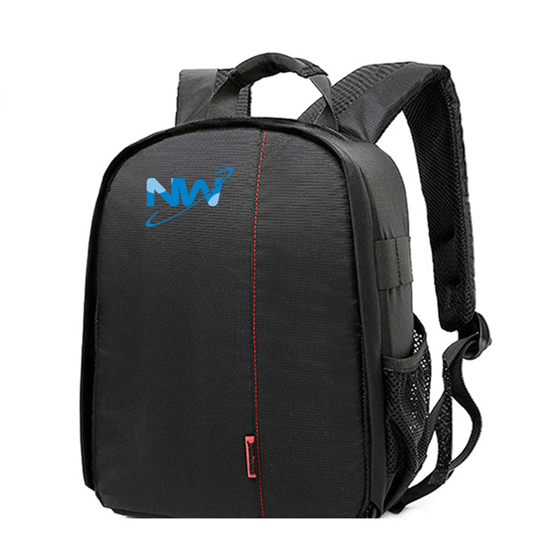 The material of this camera bag is nylon. Waterproof fabric makes your camera bag more secure. Layered design. It can hold a SLR camera well. Can customize your company logo and pattern.