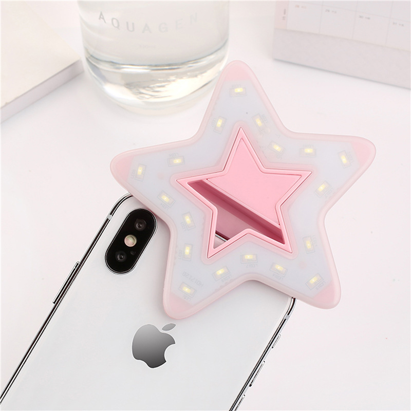 The material of this fill light is plastic. Unique pentagram shape. Make fill light more interesting. High-brightness energy-saving LED lamp beads. Soft light. Your company logo and pattern can be customized.