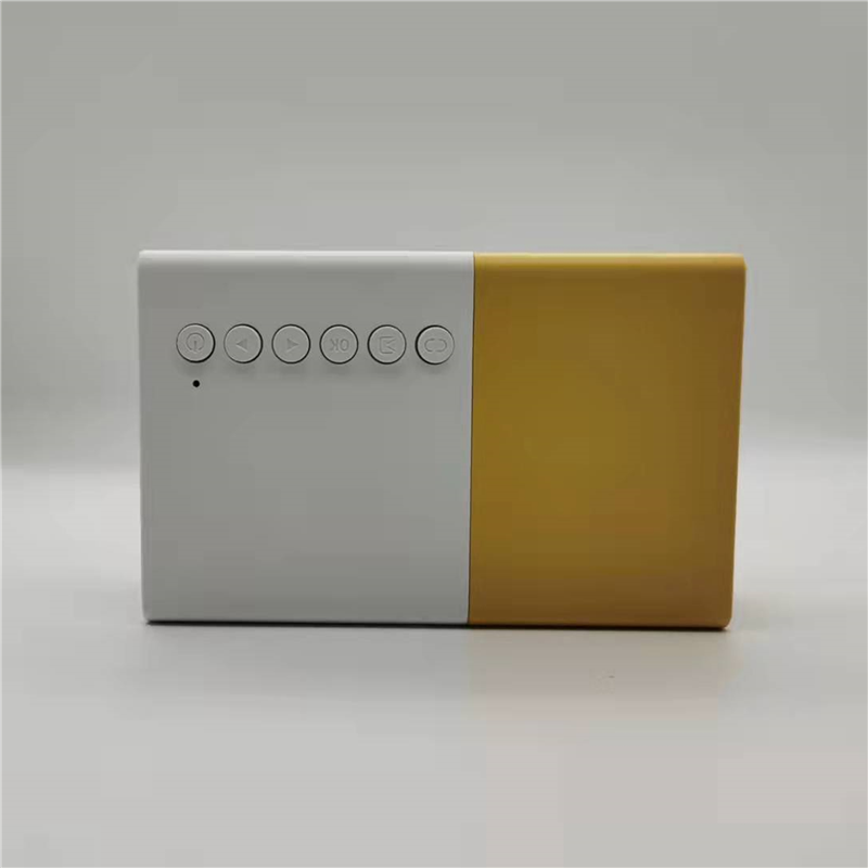 The material of this projector is plastic. The size is 5"*3.2"*1.9". It is a micro projector. It is easy to carry. It is very suitable for outdoor camping, parties and other occasions. Can customize your company logo and pattern.