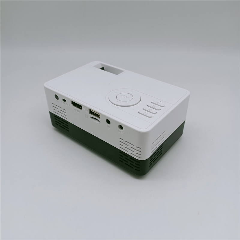 The material of this projector is plastic. It is a micro projector. It is easy to carry. It is very suitable for outdoor camping, parties and other occasions. Can customize your company logo and pattern.