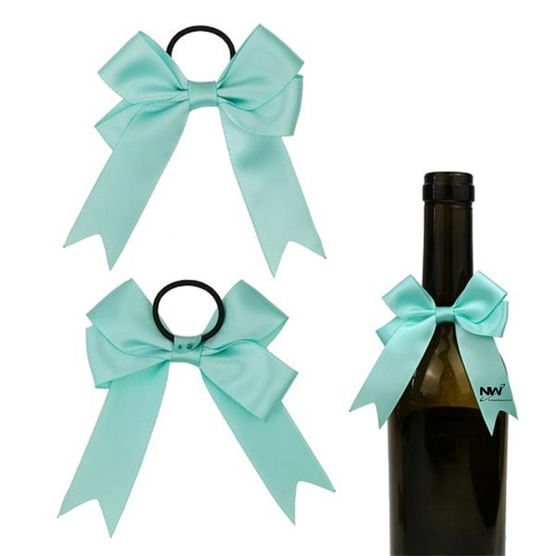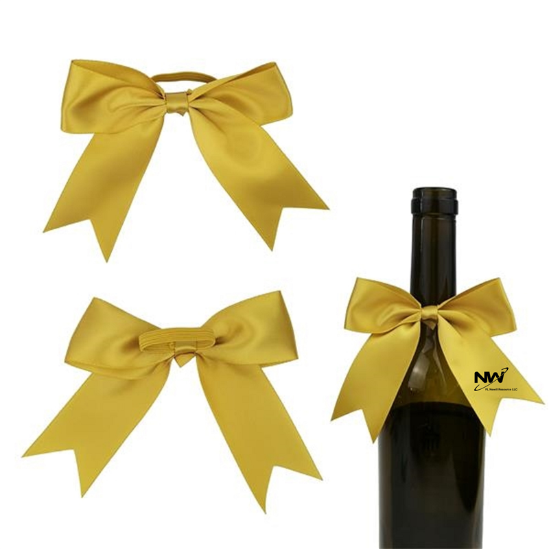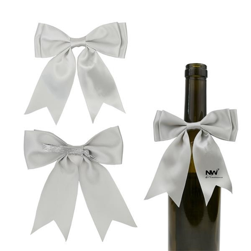 An elegant bow charm handcrafted to be presented on wine bottles, Christmas trees, home decor, weddings, and more. The bow features a durable elastic loop on the back which secures the bow in place for a hassle-free stylish finish to your gifts. Each bow can be customized with a logo to match any of your occasions.
