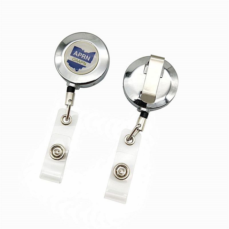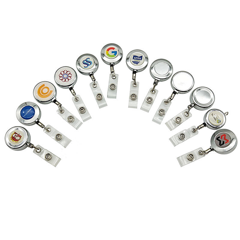 This practical and attractive round metal badge holder features a pocket clip and extends up to 25" for quick and easy badge swiping. The sleek and shiny surface beautifully displays your company imprint, making this a great advertising tool. Customized logos and patterns are available.