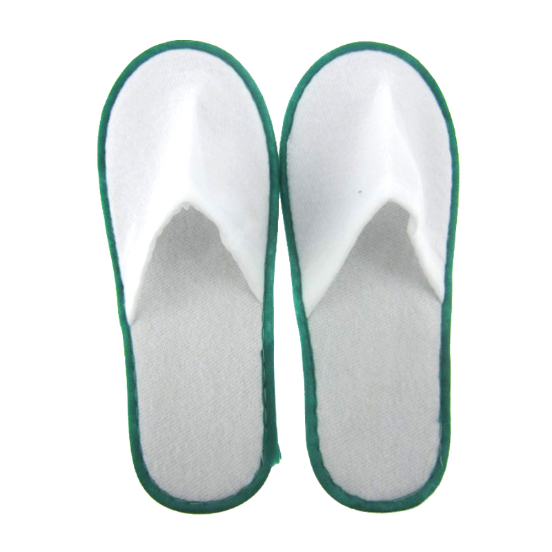 These disposable slippers are made of poly towel with 4mm skid resistant EVA sole. The logo can be silkscreened, perfect for beach resorts, hotels, or country clubs.