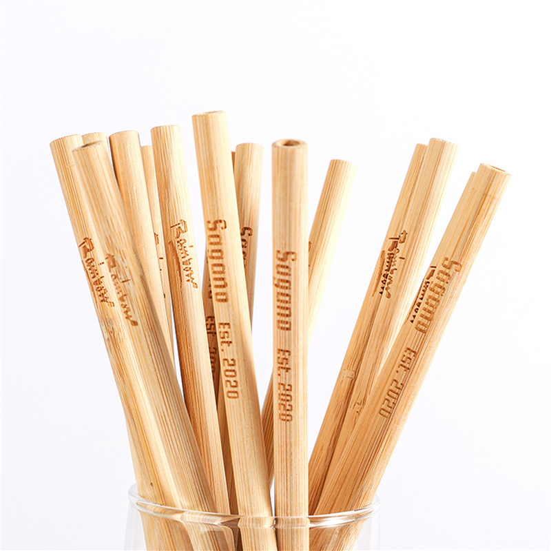 Made from sustainable, renewable bamboo, the straw is lightweight, strong and disposable. Laser engraved logos are available and included in the price. Additional cost for other packaging options like custom kraft paper bag and cotton pouch with wire cleaning brush as a set. Great environmentally and practical promotional gifts for your next event.