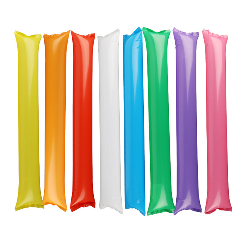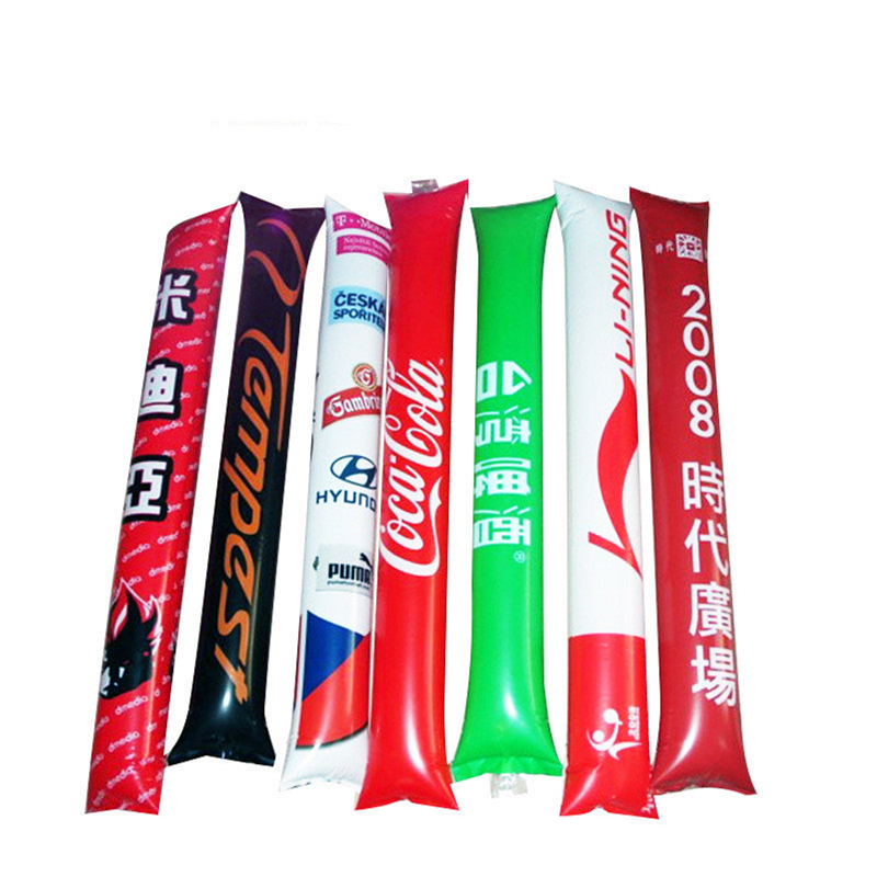 Re-inflatable and re-usable vinyl noisemakers make events come alive when the 2 Sticks are struck together. Custom logos or patterns are available. Unit price is for each pair with one color printing.