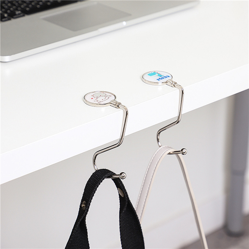 A shiny metal purse holder with a hook and a digital custom logo on the top. Hang a purse or bag from the edge of a desk, table or chair. Bag hangers are the perfect item for ladies looking for both the unique and the practical gift. Keeps belongings close, clean and safe.