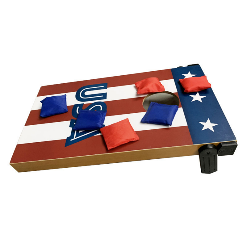The sandbag table is made of wood. It includes a table and six sandbags. It is very suitable for playing on the beach with children. Foldable, easy to carry. Perfect for logo printing.