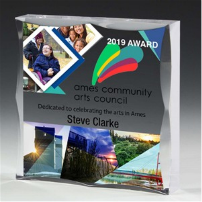 These acrylic paperweights feature machine cut and hand polished fan-shaped edges for a classic and refined look. They can be placed upright or flat on the table. We also can customize according to your need. Perfect for printing your company information.