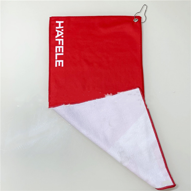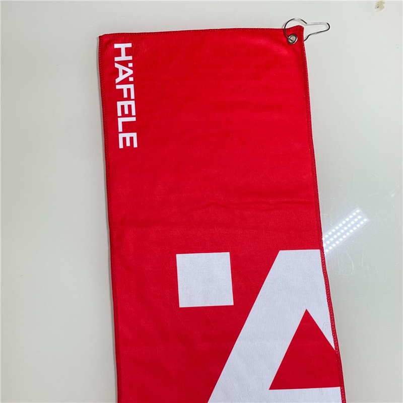 This golf towel is made of microfiber. Size 15 "* 25". It has amountaineering buckle for easy hanging. We can customize the shape, size and color for you. Perfect for printing your logo.