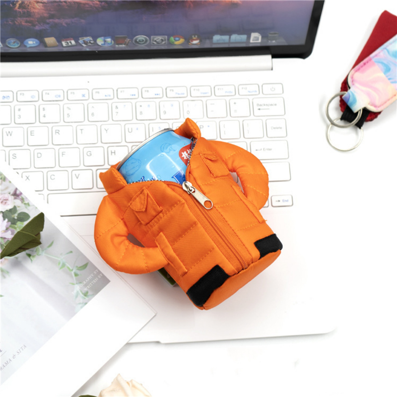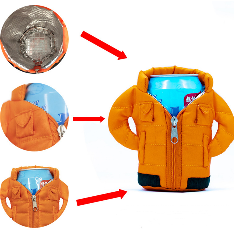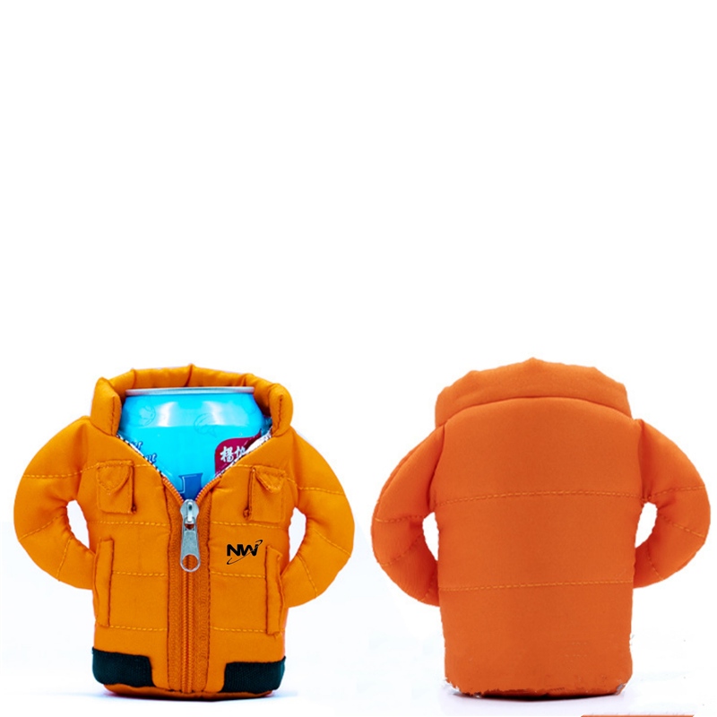 This can cover is made of cotton. It is shaped like a down jacket. Unique shape. Can customize your logo and pattern.