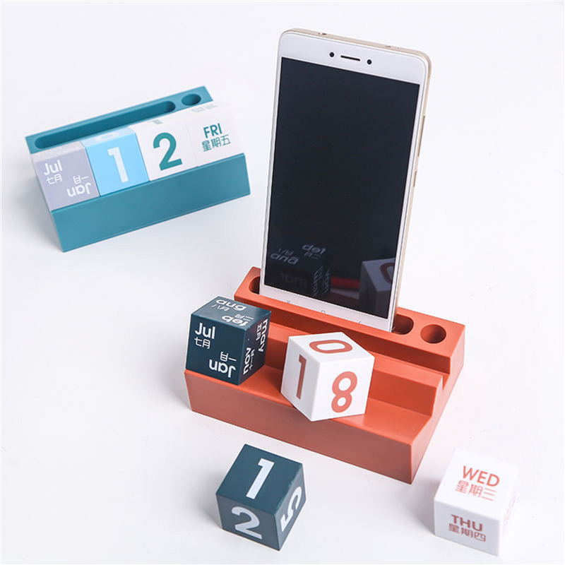 This multi-function desktop calendar with pen/phone holder, made of durable, lightweight and reusable plastic. Build your own style calendar by snaping together the blocks. Creative and attractive enough as desktop displays and perfect for promotional gifts. Custom logo or pattern is available.