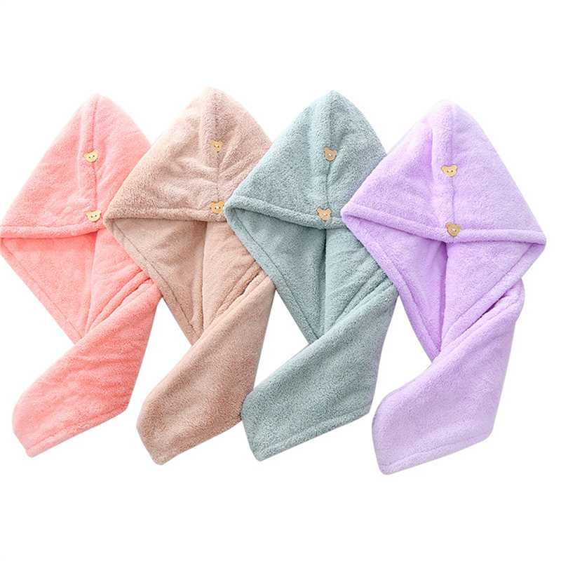 Made of 15% Nylon+85% Polyester Fiber. This Fast Hair-dry Cap comes with button and loop for keeping it on securely, double-layer fabric, comfortable and convenient to use, perfect for home use or on travel. Embroidery custom logo is available.