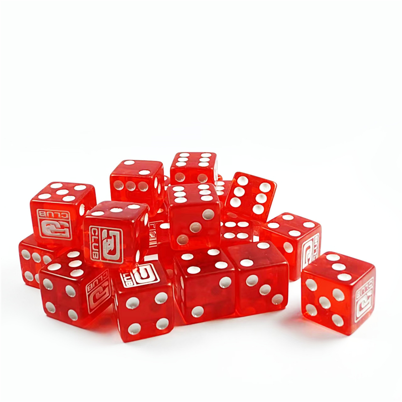 These transparent dice are made of resin. You can print words and phrases, numbers, spots, or any design you think of. Dices are very suitable for casino night promotions, Las Vegas trade shows, giveaways, etc.