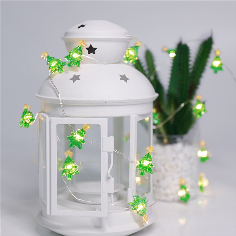 The size of this lamp string is 78 "long. It is equipped with 20 lights. This green Christmas decorative lamp is in the shape of a charming small Christmas tree, with a star design. It will bring beautiful decoration to your tree, fence, front path or porch, and create a happy and sweet atmosphere for indoor or outdoor use. It is powered by 3 AA batteries (not included).