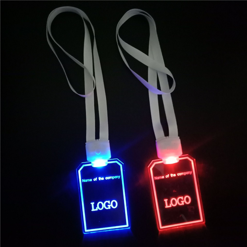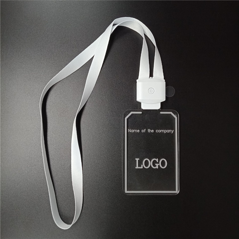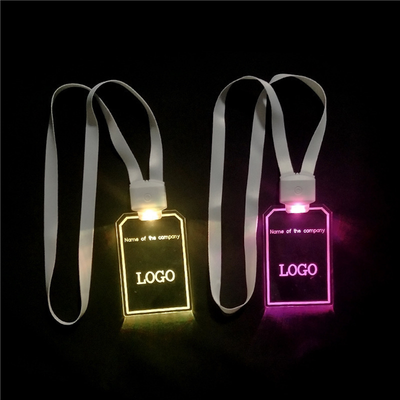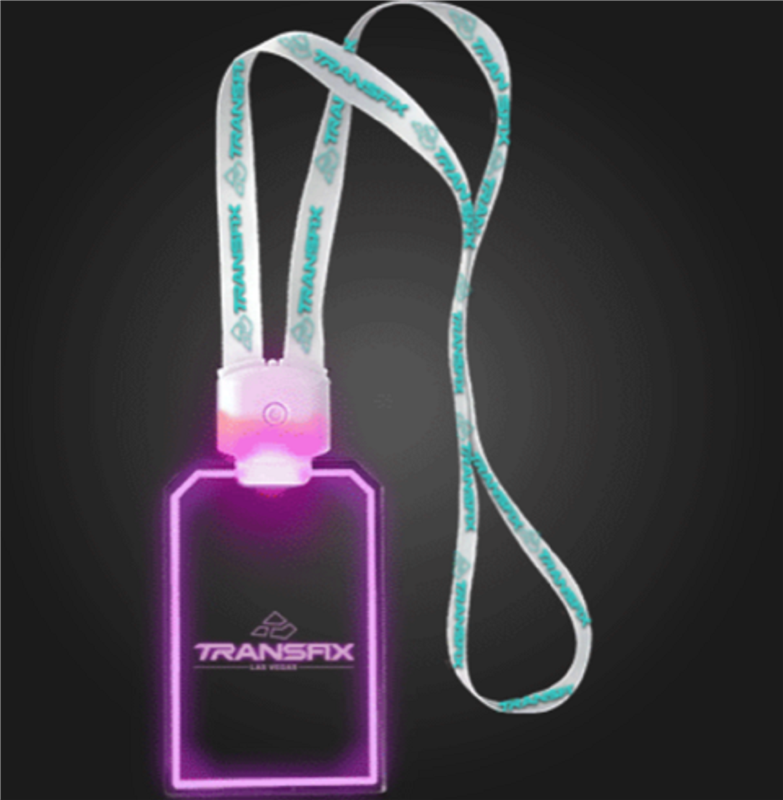 These worked great for identifying staff or team leads at night during an event, look fantastic! Custom laser engraved logo on the acrylic badge, and custom step and repeat imprint logo on the lanyard are both available.