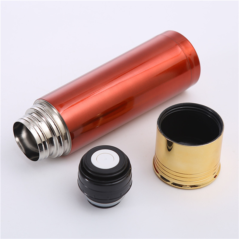 This 25oz Vacuum Insulated Stainless Steel Thermos features 18/8 stainless steel construction, double wall insulate, keeps beverage hot or cold for up to 10 hours. it's well with everyday activities like camping, picnic, hiking, hunting and fishing. Can customize your logo on it.