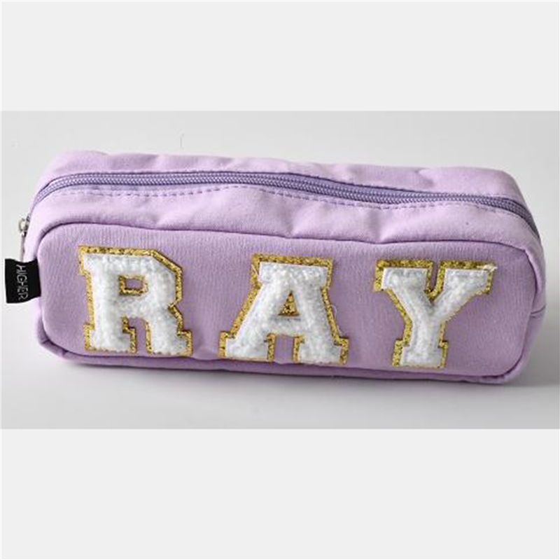Rectangle Large Capacity Embroidery Patch Zipper Pencil Case