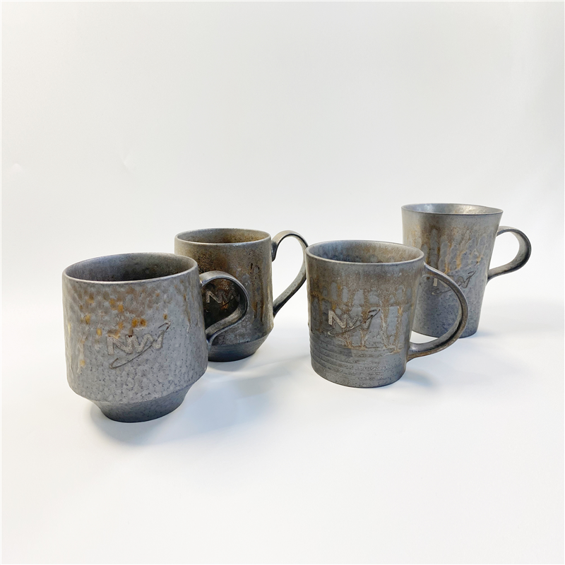 These vintage-inspired rust coffee mugs are handcrafted from ceramic, and each mug even has its own character. Not all ceramic coffee cups are the same and this beautiful upscale design proves that. Laser engraving is offered as a secondary decoration method .They are fun for many different uses whether it be for a diner, hot chocolate at the campfire or a party, these rustic mugs are sure to delight.