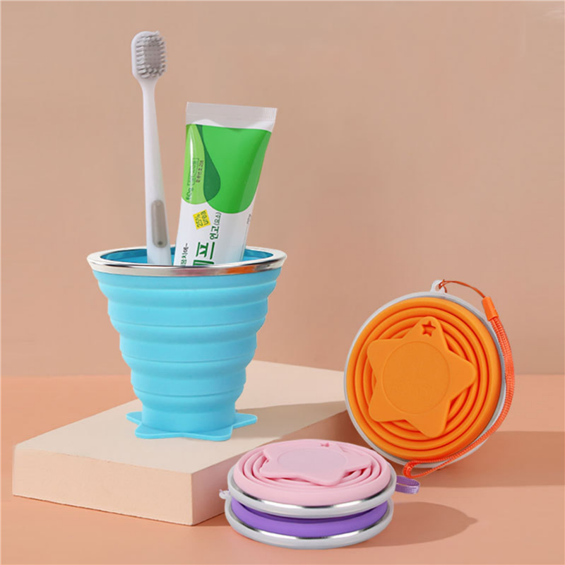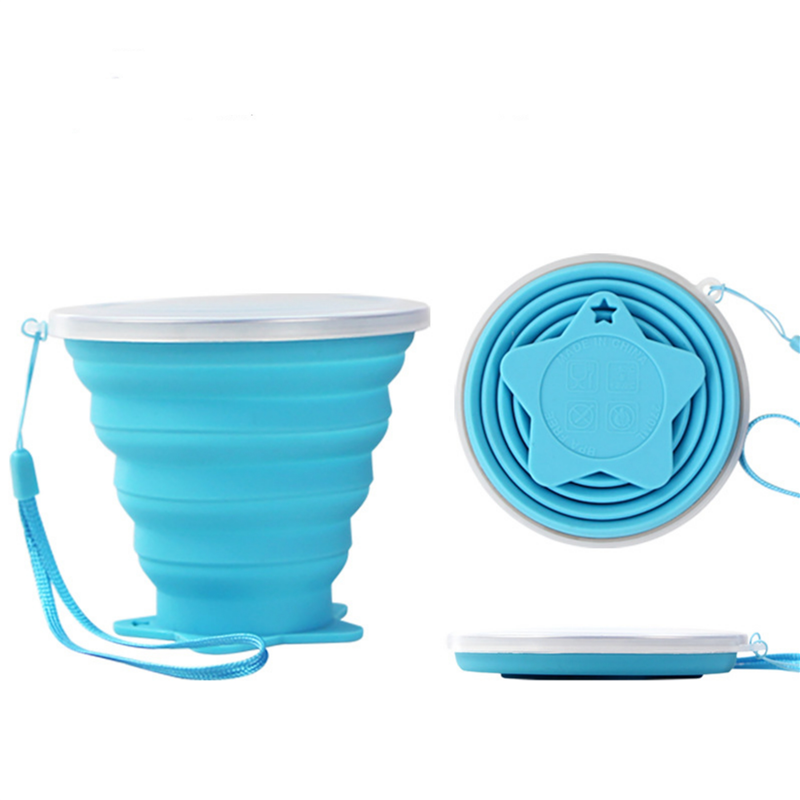 9 OZ silicone foldable coffee cup with lid, suitable for cold drinks, coffee, hot water, ice water, and juice. Foldable design, saving space, only 0.63 inches after folding, easy to fit into pockets, backpacks, and suitcases, occupying very little space, suitable for hiking, travel, camping, and sports. Can custmozie your logo.