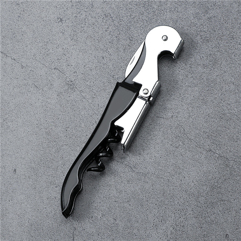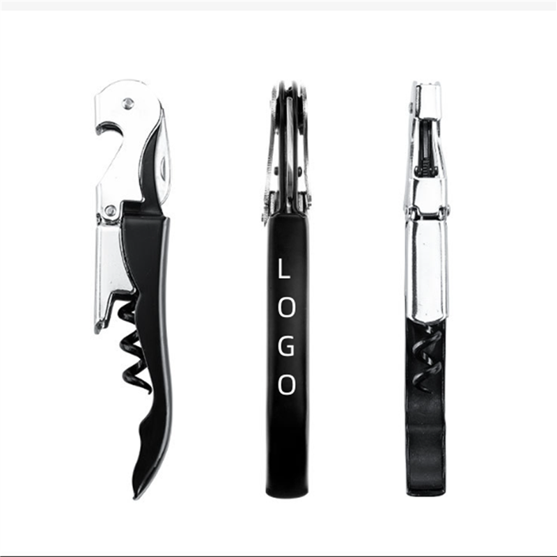This wine opener has matte finish metal body and features stainless steel inserts. Easily opens wine bottles with corkscrew and includes serrated foil cutter. Can customize your logo on it.