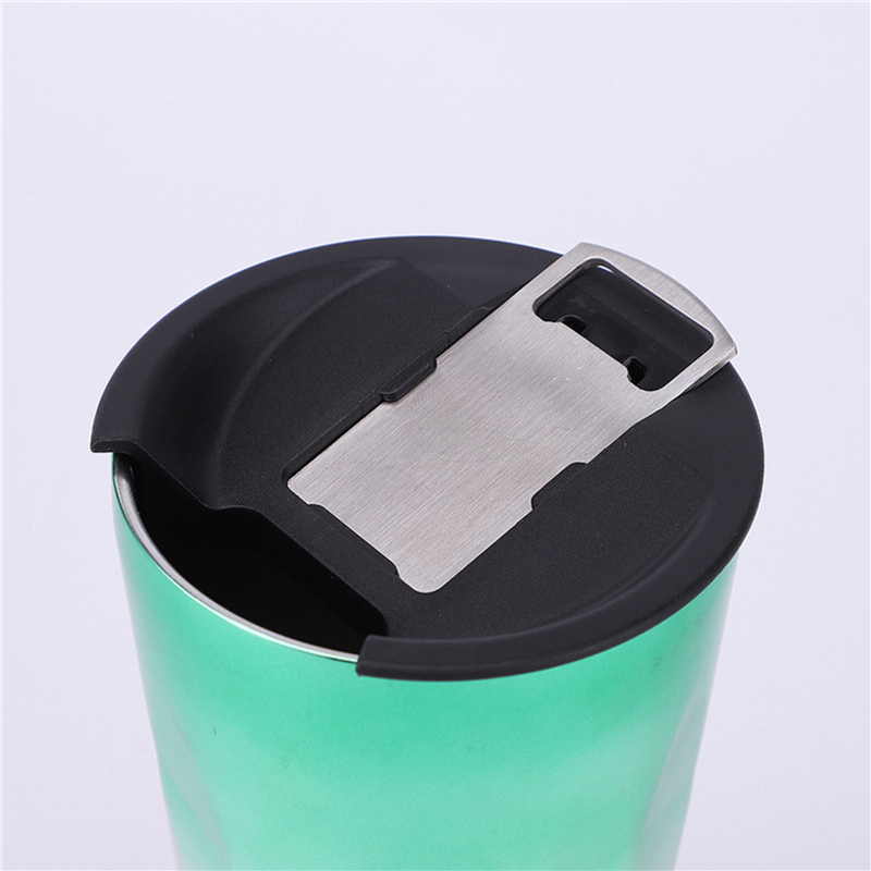 The tumbler is crafted from stainless steel material with double-wall construction, easy to hold with exterior diamond textured grip. It will hold 16 ounces of your favorite hot or cold beverages and is top shelf dishwasher safe. Custom laser engraved logo is available.
