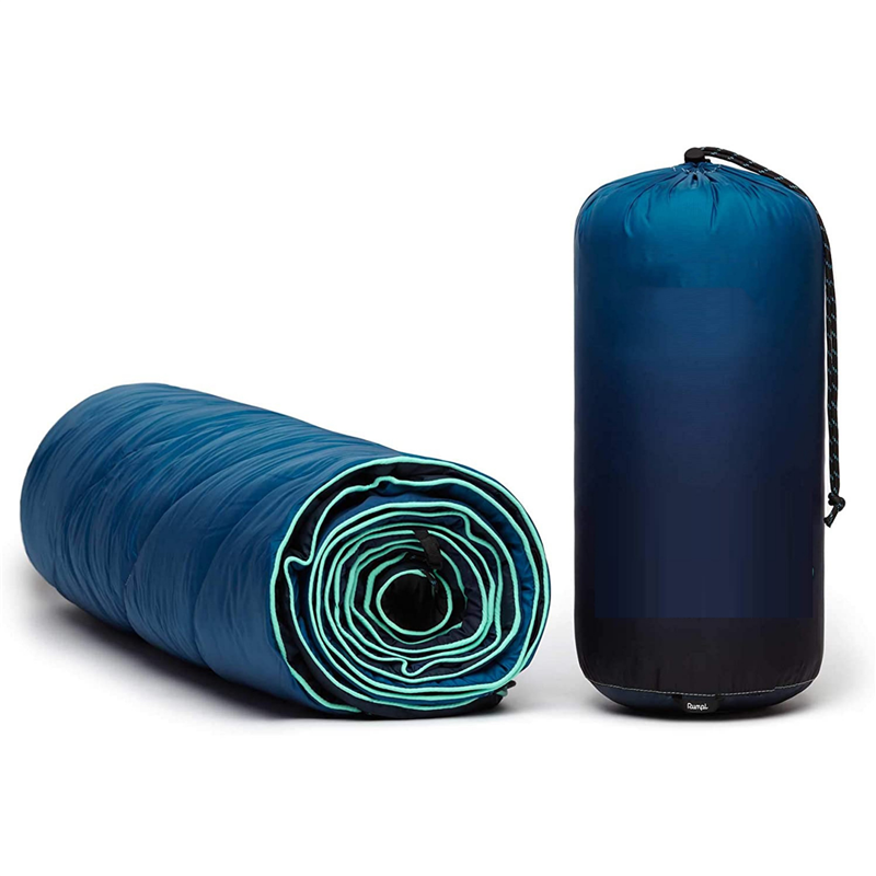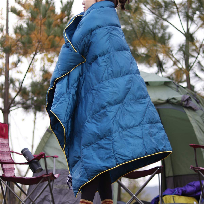 The material of this blanket is polyester. The filling material is hollow cotton. Wind resistant and waterproof. It is very warm, but almost weightless. Equipped with a storage bag for easy carrying when going out. It's a necessary helper for you camping.