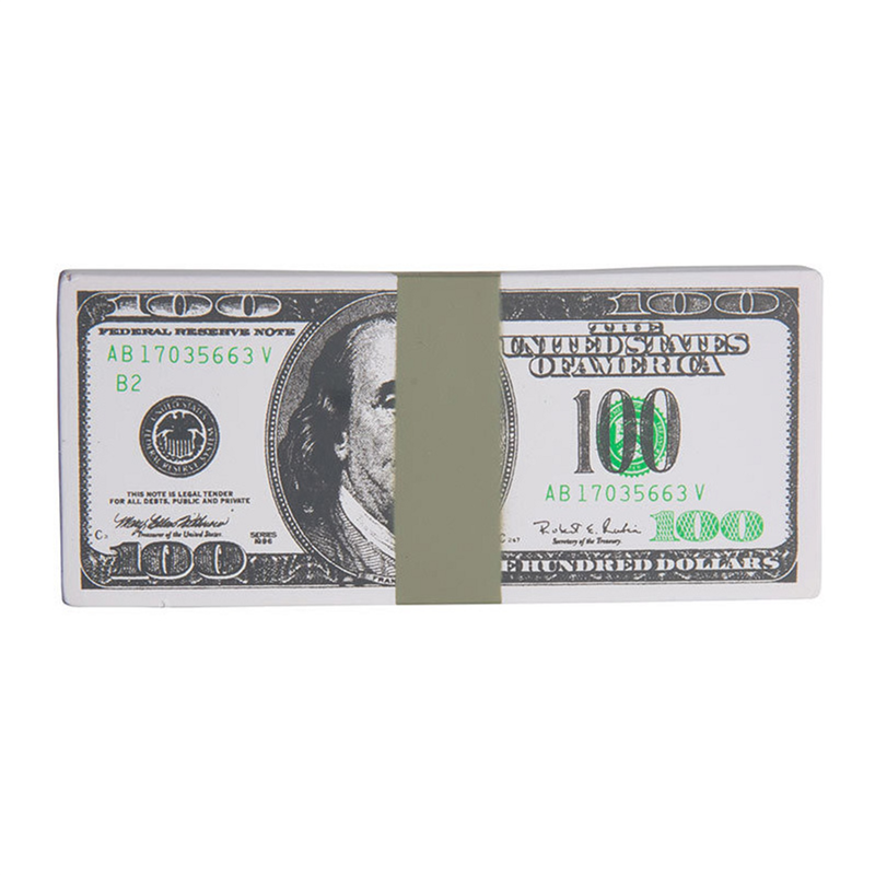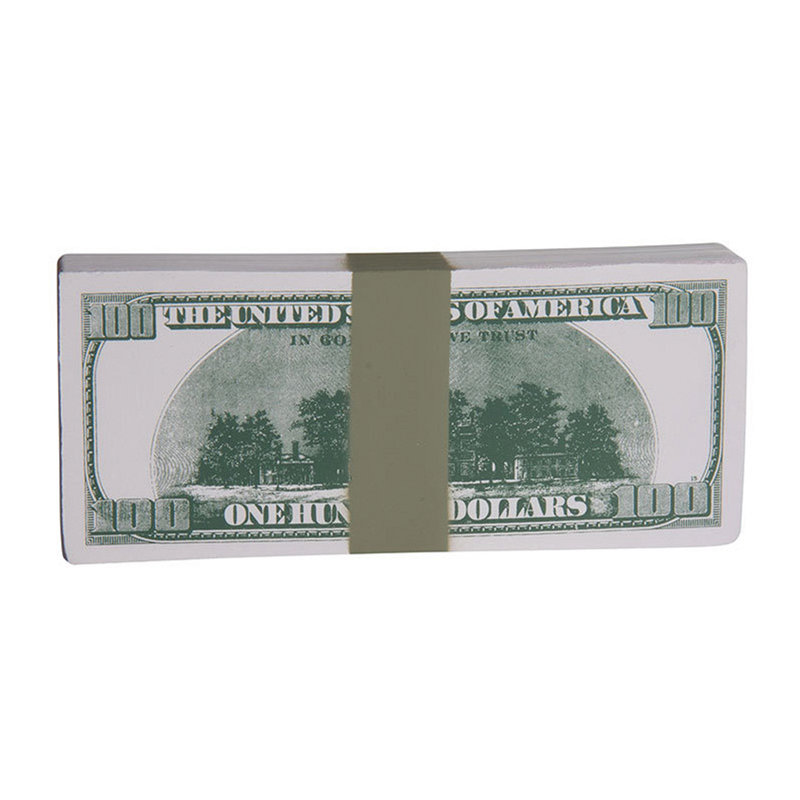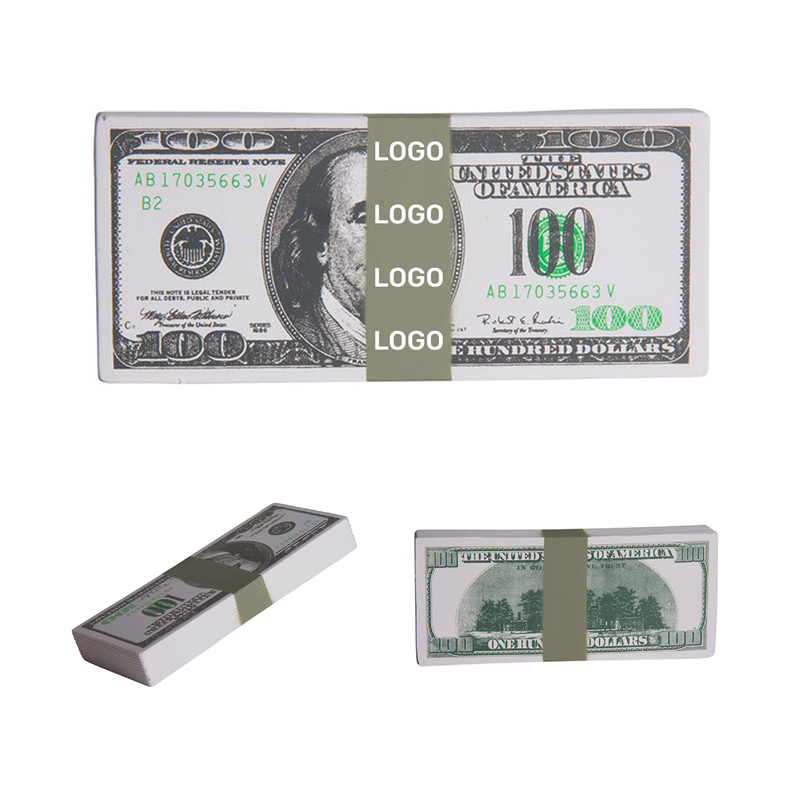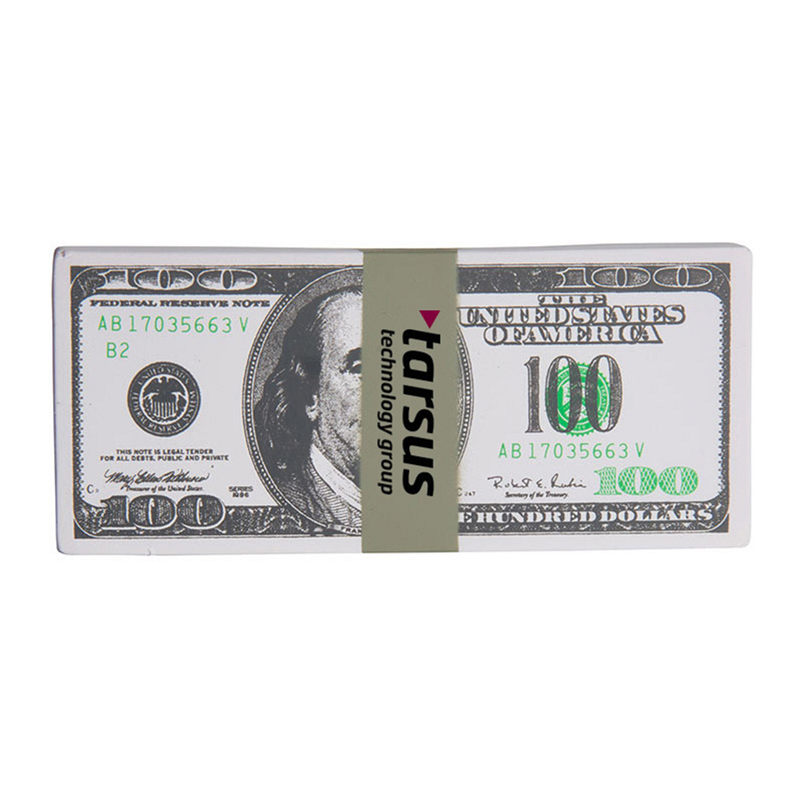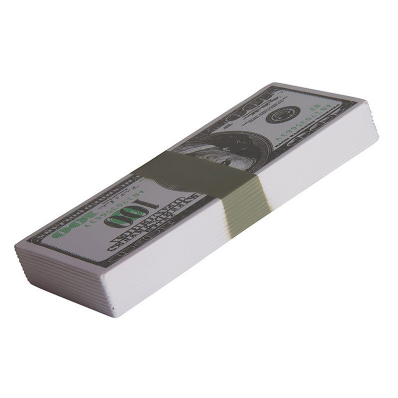 $100 Bill Stack is fantastic for fund raisers. This one hundred dollar bill stack shaped stress reliever can display your logo or slogan for the next advertising campaign or big sale.