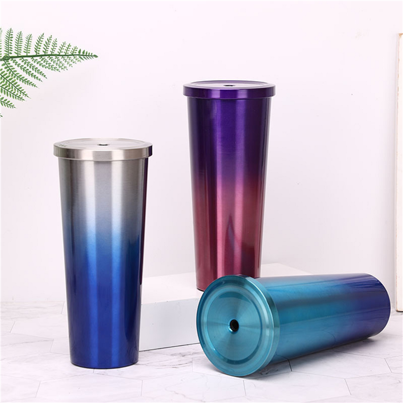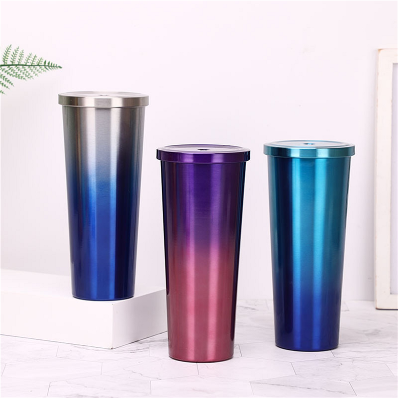Cup is made of stainless steel and is designed in gradient color, which is very suitable for the car cup holder and can meet your daily drinking water needs. Stainless steel straw is included. Custom laser engraved logo is available.
