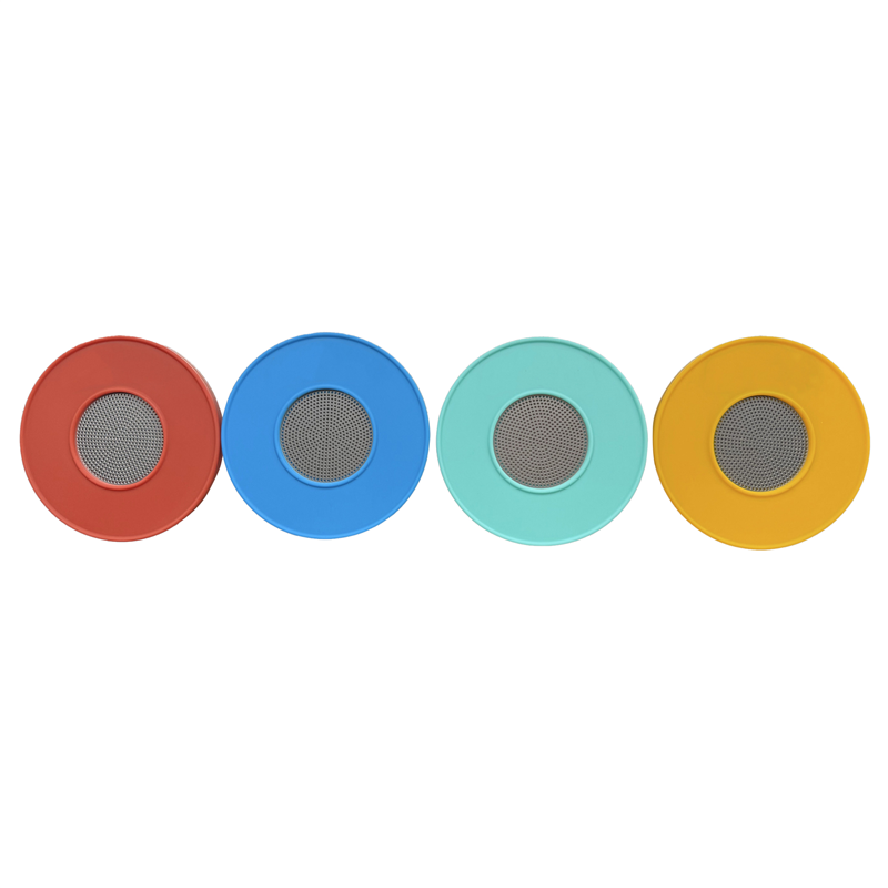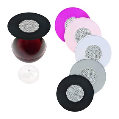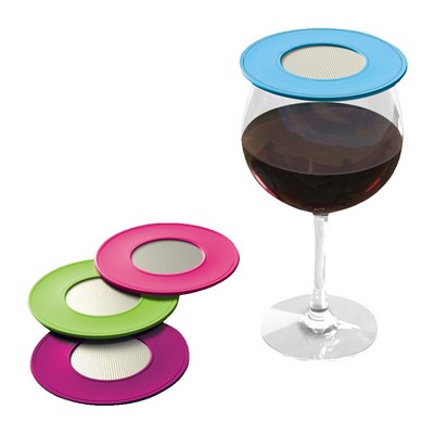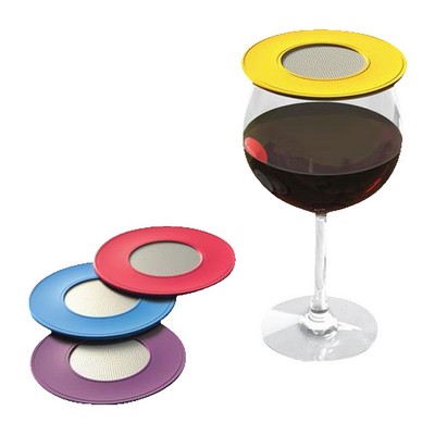 Protect your wine glass from outside intruders with our wholesale silicone ventilated drink cover. A weighted screen prevents covers from blowing off and allows wine to aerate. Silicone cup lid is made with BPA-free, food grade silicone, and is dishwasher safe. Tops can also be used as wine glass markers, outdoor coasters, or even small snack plates. Fits glasses up to 4 inches wide. Completely logo customizable anywhere on the rim. 4" D