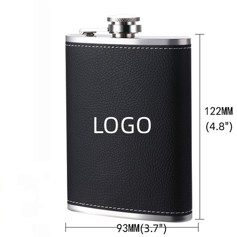 This 8oz Hip Flask is made of 304 Stainless Steel and covered with Leather Sleeve. Can deboss your pattern and logo on it.