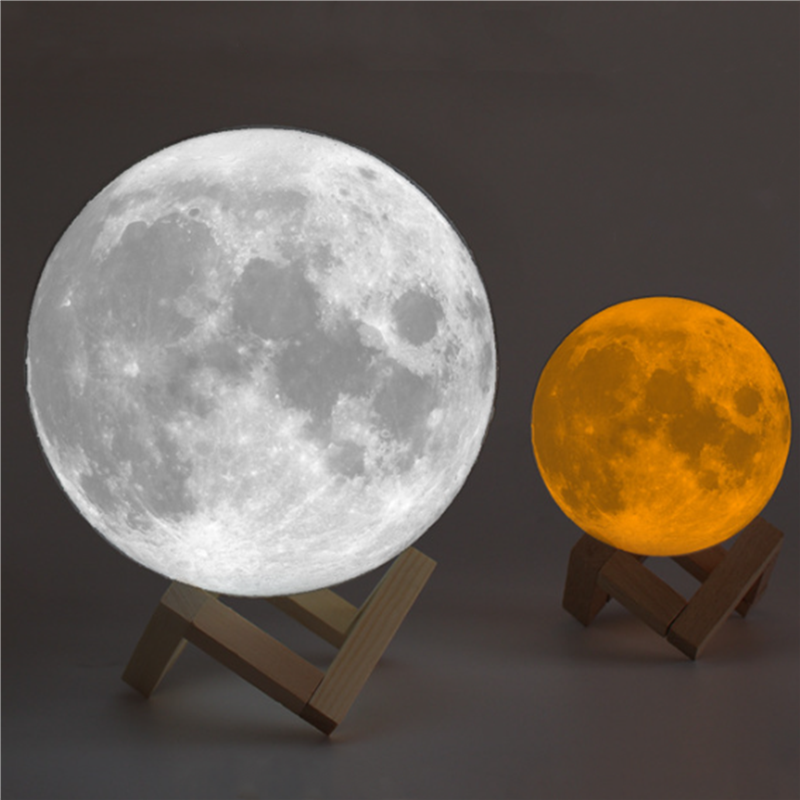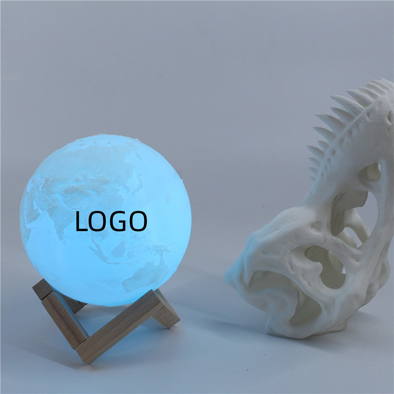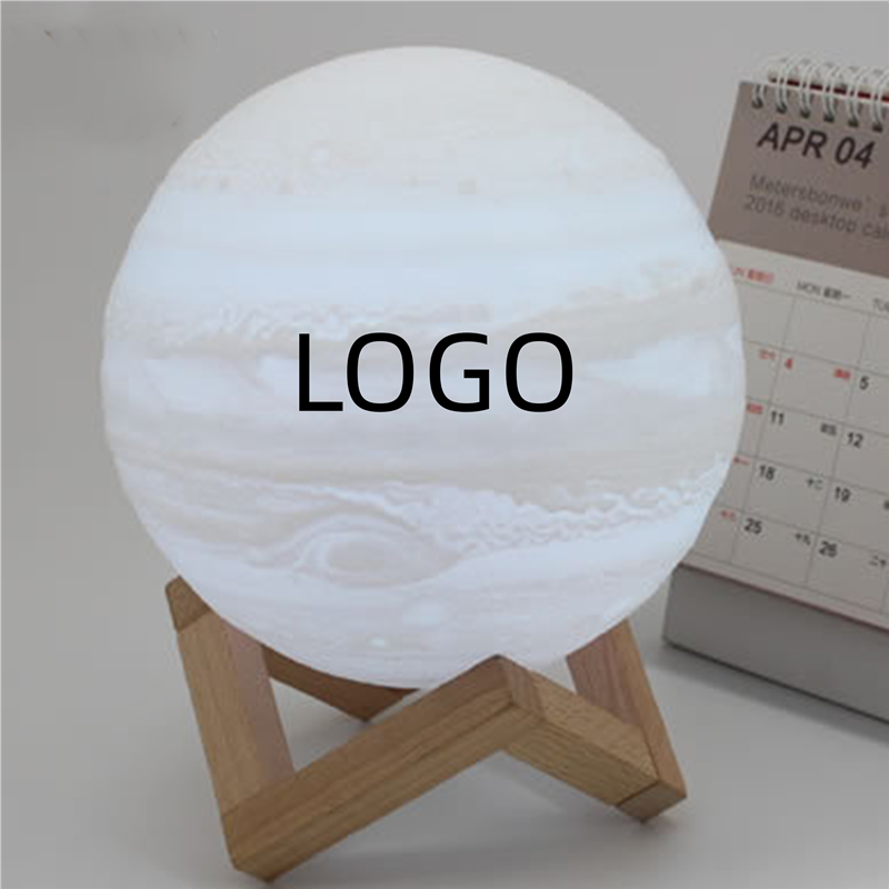 This Night Light is made of high-quality PLA material by 3D print. With a wood stand, and a 400mAh Li-battery inside, fully charging 2-3 hours, light up 12 hours. There are 3 models, first slapping, the light will turn on with yellow light, second slapping, the light turns to white, third slapping, the light turns to warm white, and fourth slapping, it will turn off. Price quoted by size 6"D. Size customized are available. Earth, Moon, Jupiter three styles available. Can customize your logo or pattern on it.
