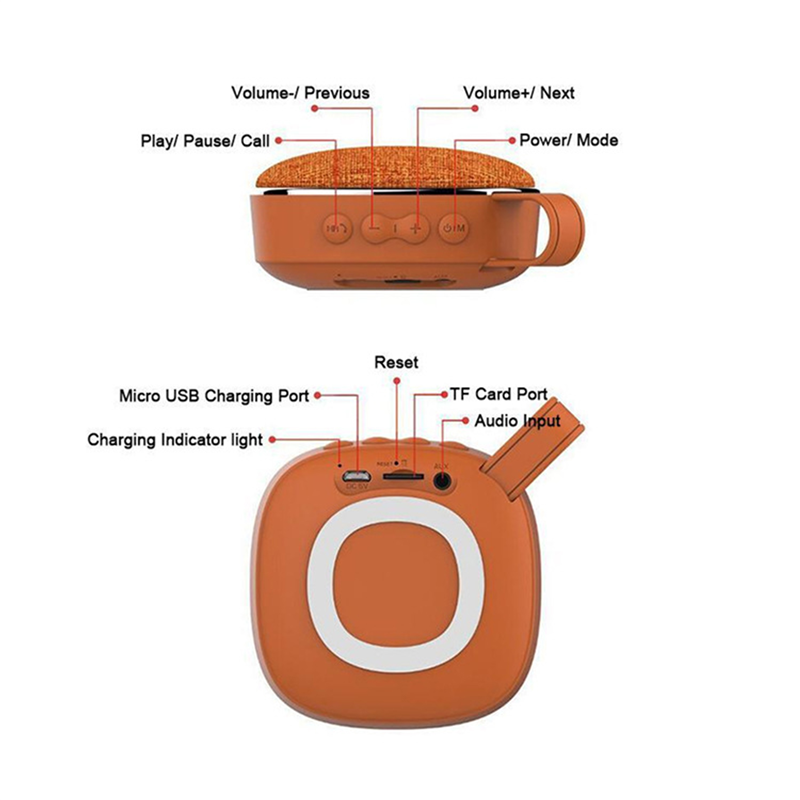 This wireless speaker is made of premium plastic and fine fabric, with built-in battery. It supports Bluetooth play, TF card and with USB charger interface. Portable size, can be used indoor or outdoor. It is a perfect promotional gift for your company or organization. Can customize your logo on front, side or back.