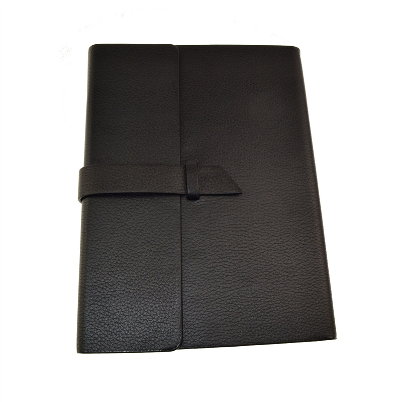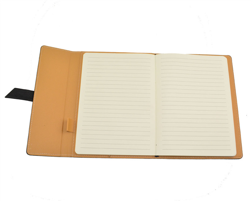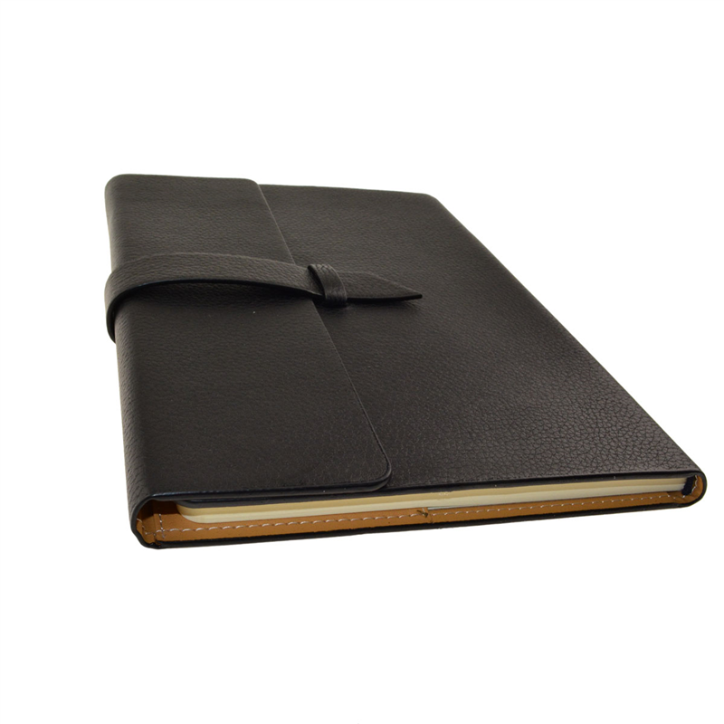 This notebook comes with a fashionable strap closure and is designed with a top black PU cover for both style and durability. It includes 96 lined pages and is ideal for business or school use.