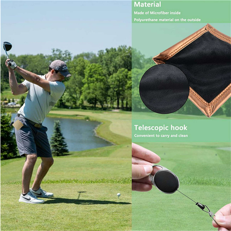 This towel is made of quality PU leather, soft and durable. The inner side of the towel can easily remove the dirt on your golf accessories without scratching them. The towel with a retractable hook can be hung on your golf bag or belt loop. Tee holder design on the side is convenient to keep a tee at any time. Can customize your pattern or logo on it.