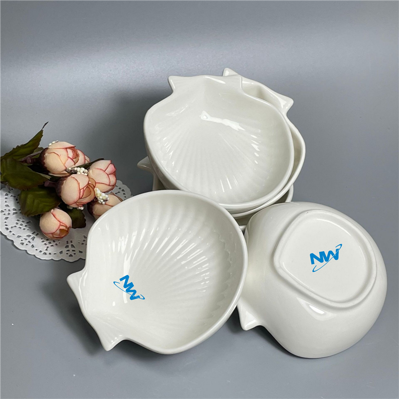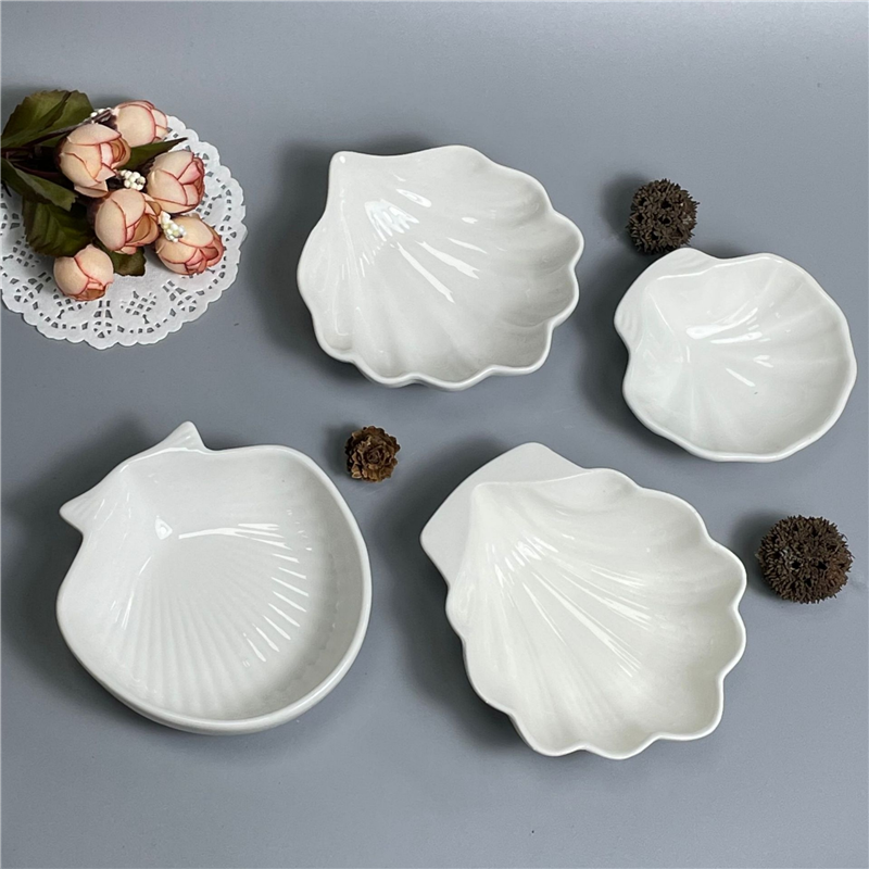 This shell shaped dish is made of ceramic material. It can be used to store seasoning, candy, or nuts. It can also be used to showcase soap. The exquisite shell shape exudes a seaside vibe anywhere. Can customize your logo and pattern.