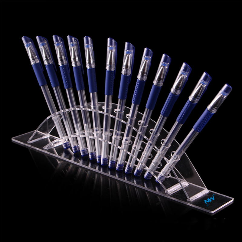 The material of this pen holder is acrylic. There are a total of 12 holes. Very suitable for showcasing various straight products. Can customize your logo and pattern.