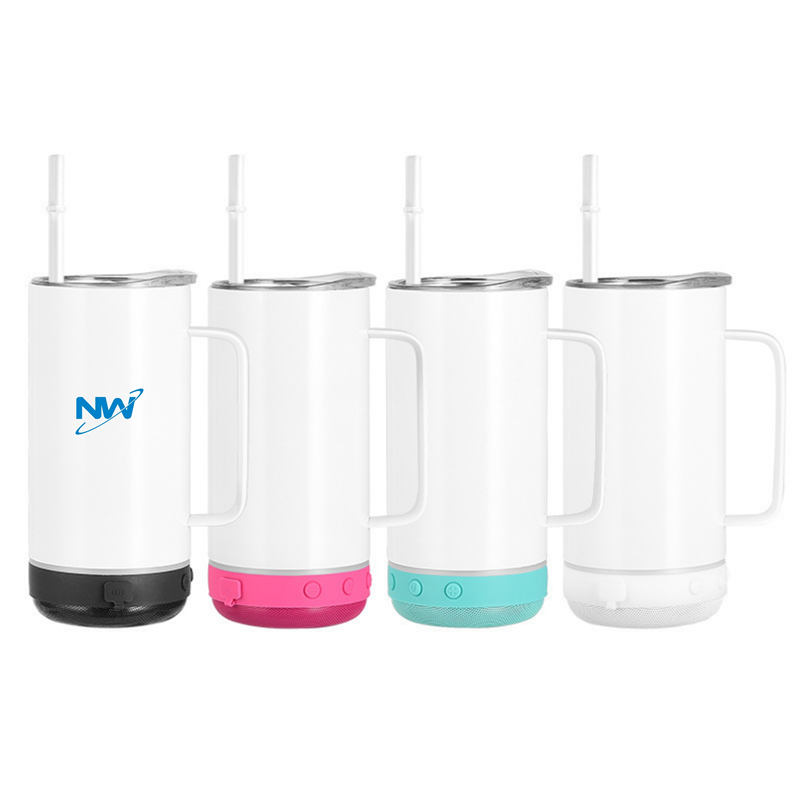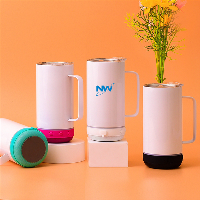 The material of this cup is stainless steel. There is a detachable Bluetooth audio system at the bottom. Equipped with dual wall vacuum insulation function, it can maintain both insulation and cooling. Can customize your logo and pattern.