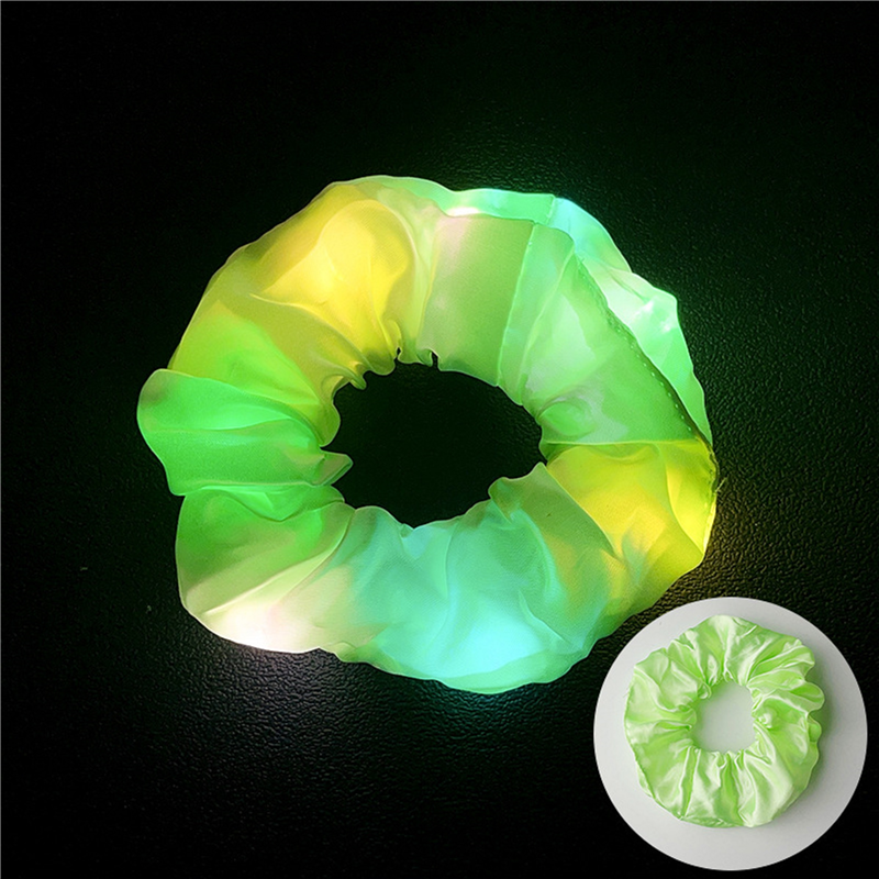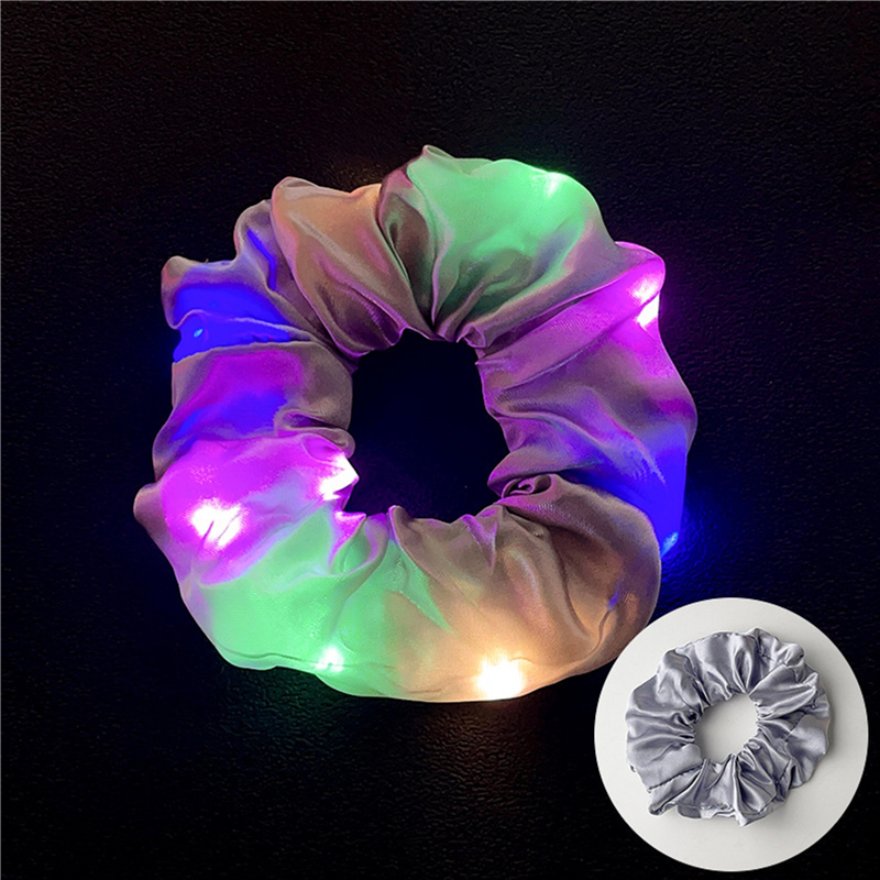 Made of high-quality satin fabric, soft and comfortable, built-in durable rubber band, LED string lights, stretchable and elastic, can tie the hair tightly, and will not hurt the hair. Long battery life, super long-lasting glow time scrunchies for girls. Three kinds of lighting modes to choose from fast flash, slow flash and constant light, suitable for various occasions. Custom pattern on the scrunchies is available.