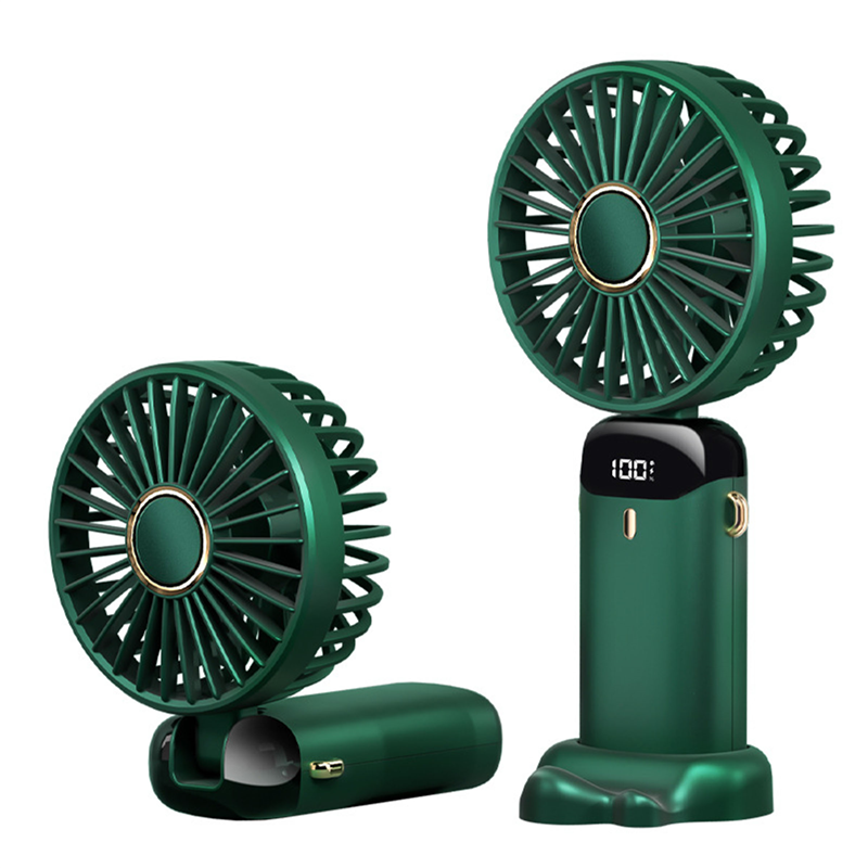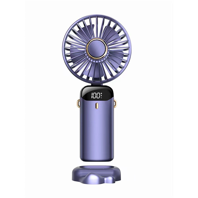 This small fan has a digital display screen. Foldable and has a detachable base. Easy to carry out or put on desk. Can customize your logo on it.