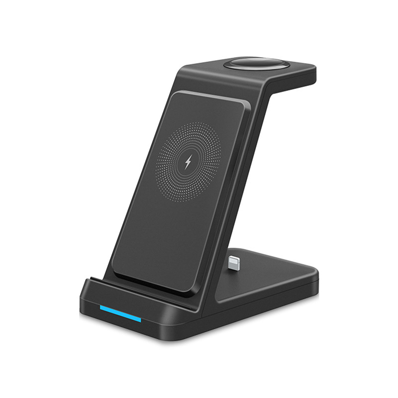 This multifunctional wireless charge can be used for phone, watch and earphone's charge at the same time. And also as a phone holder. Can customize your logo on it.