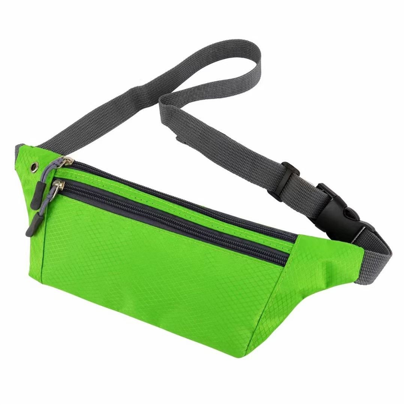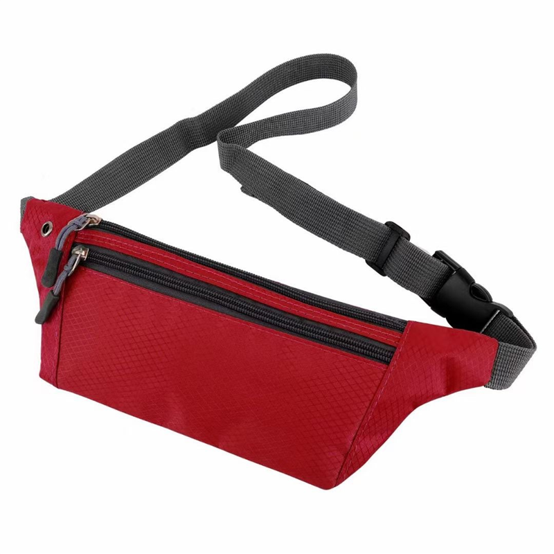 This fanny pack is made out of polyester material. It features 3 big pockets, an adjustable running belt, and a headphone jack in front of the bag.