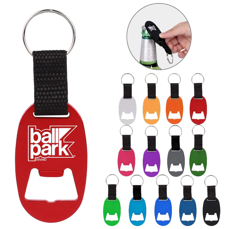This metallic beer bottle opener is very useful. It's oval shape makes it easy to carry by hand, and can be used to open beer or beverage bottles with ease. The aluminum key chain part is durable and smoothly polished to make an ideal place to laser engrave your logo.