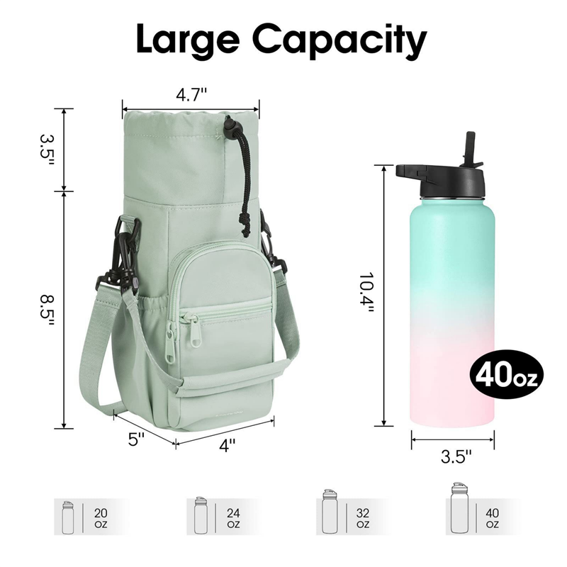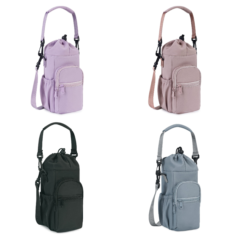 The material of this kettle cover is Oxford cloth. A glass that can hold up to 40oz of water. Used for walking, running, gym, cycling, hiking, and more. Equipped with two zippered pockets, it can store smartphones, cash, card keys, and other small items. Equipped with adjustable shoulder and shoulder straps, suitable for all body types, you can hang it on the shoulder, cross the chest as a sling bag, or just hold it by hand. Can customize your logo and pattern.